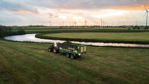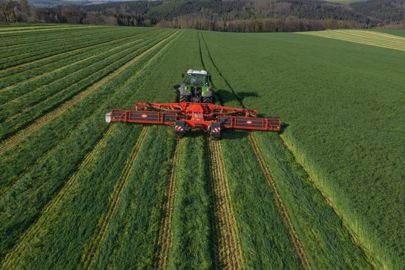 La faucheuse FC 13460 coupe sur 13,4 m de large en un seul passage ! Ses tapis rassemblent le fourrage en un andain, dont la largeur varie de 1,8 m à 3 m. De quoi alimenter directement une ensileuse. L’outil offre également un large espace de stockage. Les tapis peuvent être relevés si besoin et question positionnement de l’andain, l’opérateur a le choix. Jusqu’à présent, Kuhn proposait la FC 9330 D-RA, avec une largeur de travail de 9,3 m, comme étant la faucheuse à disques la plus large de son catalogue. Avec une largeur de travail d’environ 13 m et un conditionneur, cette nouveauté permet aussi de travailler en mode Controlled Traffic Farming (CTF), c’est-à-dire de travailler avec des voies permanentes.