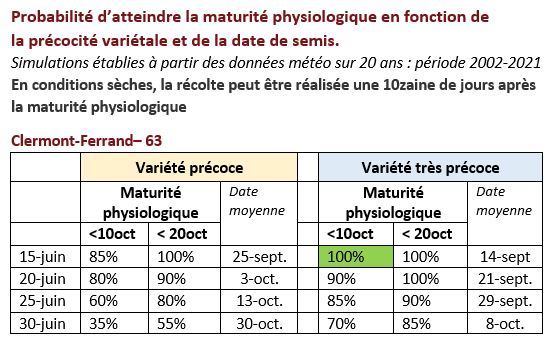 Date de semis et précocité variétale conditionnent la probabilité d’atteindre la maturité physiologique :